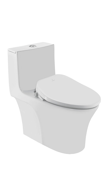 Range: Bidspa (Electronic WC) Code: ITS-WHT-89853S300PP Description: Bidspa Rimless Single Piece WC With Electronic PP Seat Cover, Hinges, Dual Flush Cistern Fitting, Fixing Accessories And Accessories Set, Size: 385x720x710 mm, S Trap- 300 mm
